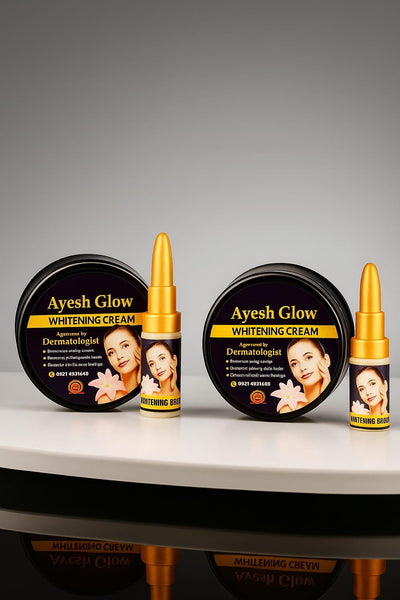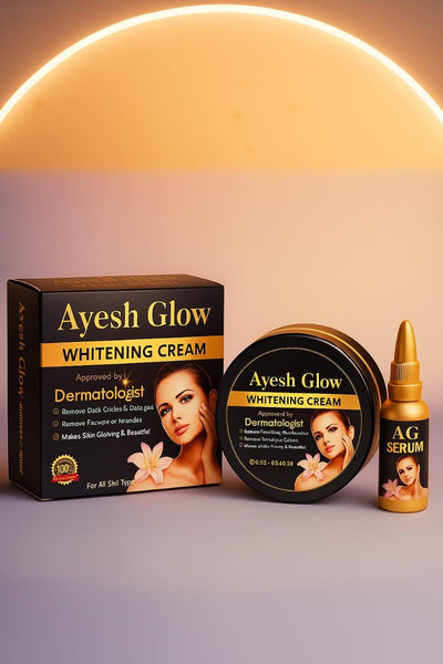 Reveal your natural glow with Ayesh Glow Whitening Cream – a powerful blend of whitening and anti-aging ingredients designed to brighten your complexion, reduce dark spots, and give you visibly younger-looking skin. Infused with Vitamin C serum, this cream works deep into the skin to fight dullness, hydrate, and even out skin tone.